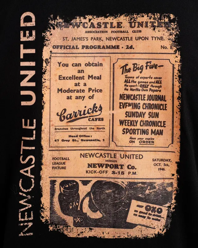 A t-shirt to show off an iconic programme from an iconic time. The 5th October 1946 marks the day that Newcastle United famously defeated Newport County by a staggering 13 goals to nil. With Len Shackleton scoring a double hat-trick, this result remains the joint biggest victory in English football history.