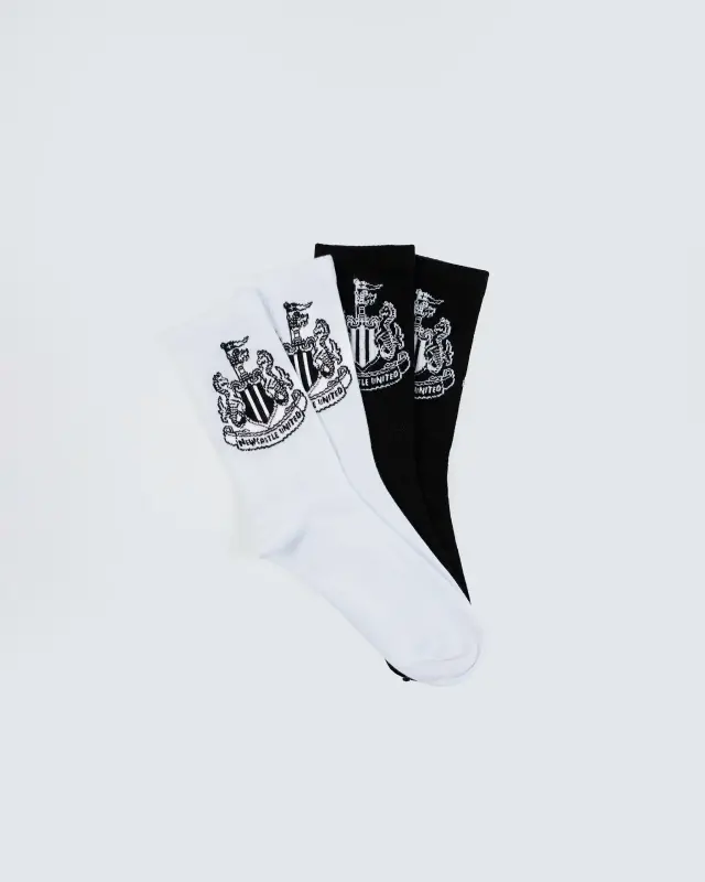 Newcastle United 2 Pack Black & White Crest Sports Socks