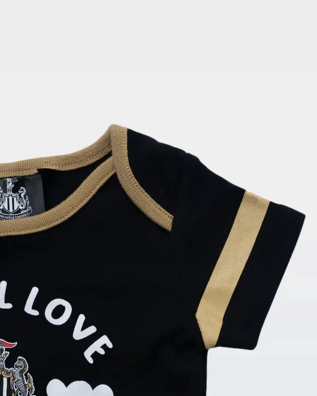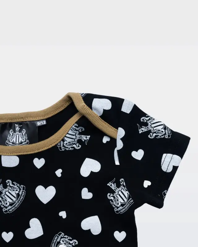 Great things often come in pairs, just like the Newcastle United 2-pack Bodysuit.One bodysuit showcases a printed ‘We Love Newcastle’ text alongside the Club crest on the front, while the other is adorned with white hearts and the Newcastle United crest all over. Both are crafted from ultra-soft cotton, featuring secure plastic snaps at the inner leg and an envelope neck closure for effortless changing.Product Details:
