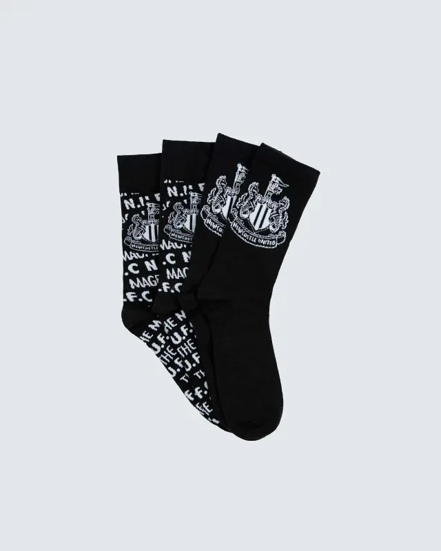 Step out in style with the Newcastle United 2 Pack Socks – both pairs in classic black, featuring bold NUFC graphics that show off your club pride loud and clear. Whether you’re at St. James’ Park or on the move, these socks are a subtle but striking nod to the Toon. An ideal everyday option for any dedicated supporter.