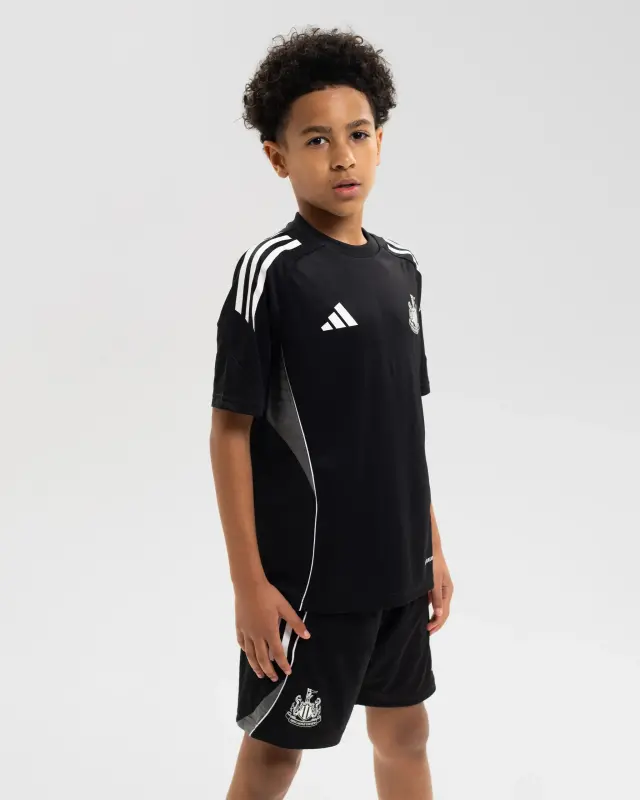 Downsized for committed young leaders, this lightweight jersey will keep them feeling fresh till their last sprint. This regular fit, short-sleeve top utilises AEROREADY technology to keep them dry as the action builds. The heat-applied Newcastle United Club crest keeps their motivation high and their head in the game.