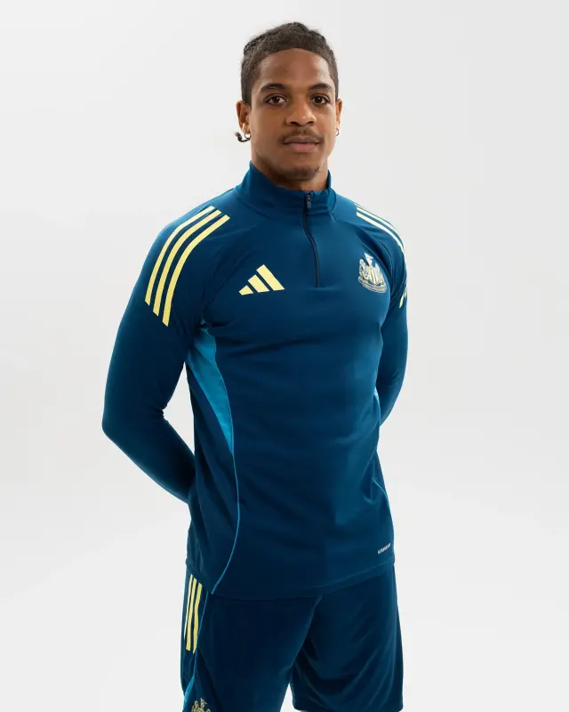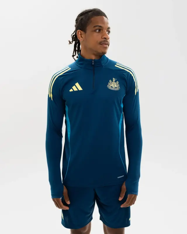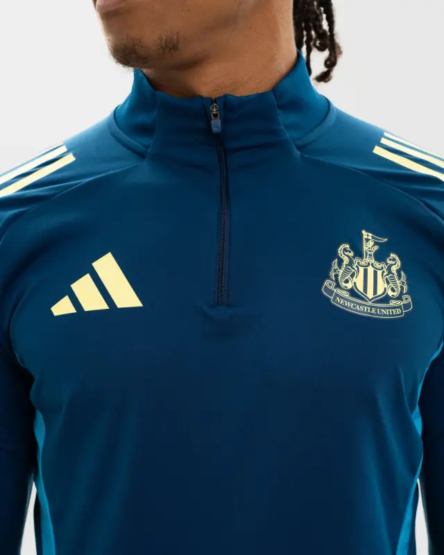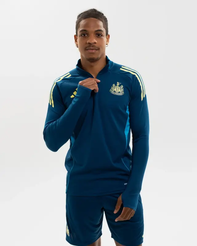 As the weather gets colder, this long sleeved training top is designed to give extra coverage to optimise performance on the training pitch. An essential part of our coach’s kit, this slim-fitting top, crafted from 100% recycled polyester uses AEROREADY Technology to keep you dry, comfortable and focussed. Complete with a quarter zip, stand-up collar, and a heat-applied Newcastle United crest, this training top offers a sleek and modern look that’s perfect for high-intensity drills.