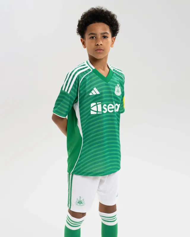 Paying tribute to the city we all call home, the Newcastle United adidas Kids’ 25/26 Away Shirt draws inspiration from Newcastle’s iconic riverside. Featuring a striking green arch inspired by the legendary Tyne Bridge, it symbolises the enduring connection between our players and our youngest fans – no matter how far away from home that we play.