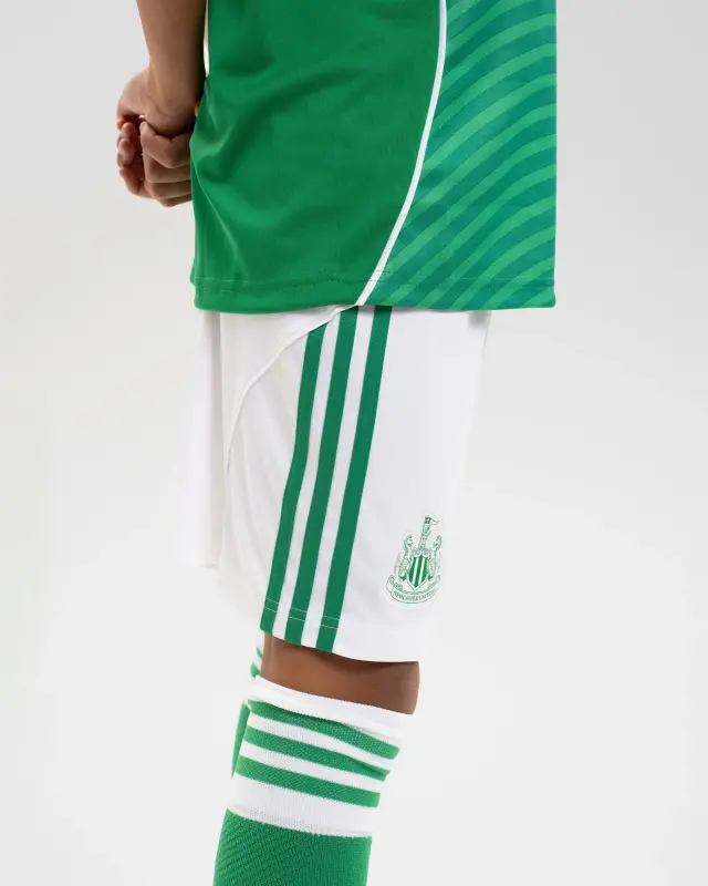 Complete the Away Kit with the Newcastle United adidas Kids 25/26 White Away Shorts. Designed to be eye-catching, the green detail in the iconic Newcastle United Club crest and adidas’ 3-Stripes boldly stand out atop the white shorts, confidently completing our Tyne Bridge inspired kit.