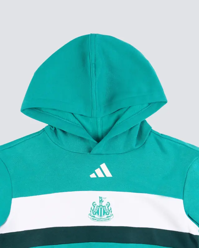 Bold and comfortable, the Newcastle United adidas Kid’s Teal 3-Stripe Hoodie features signature 3-stripes down each arm and a striking white and black panel across the middle. Complete with the adidas logo and Newcastle United crest on the chest, this hoodie is perfect for young fans who want to stay cozy while showing their team pride.