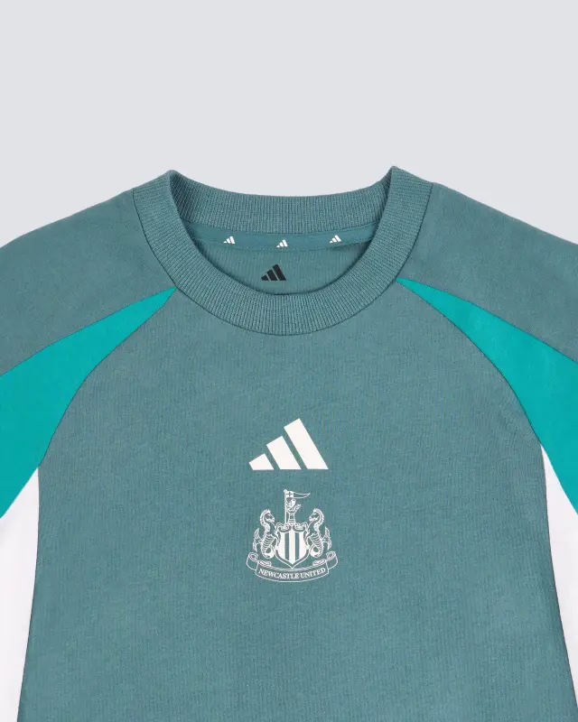 Brighten up matchdays or casual outings with the Newcastle United adidas Kid’s Teal T-Shirt. Featuring a classic crew neck design, this comfortable tee is finished with the iconic adidas logo and the proud NUFC crest on the chest – perfect for young fans who want to show their support in style.