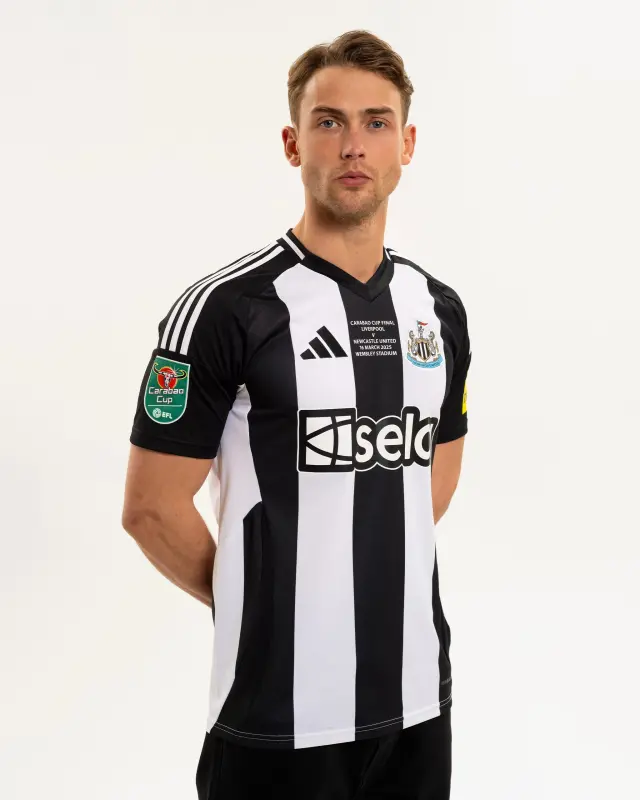 - 4 unique prints; Cup Final detail printed on the chest, Carabao Cup arm patch, “WINNERS 25” in gold club font on the back with “Sam Fender People Watching” printed below