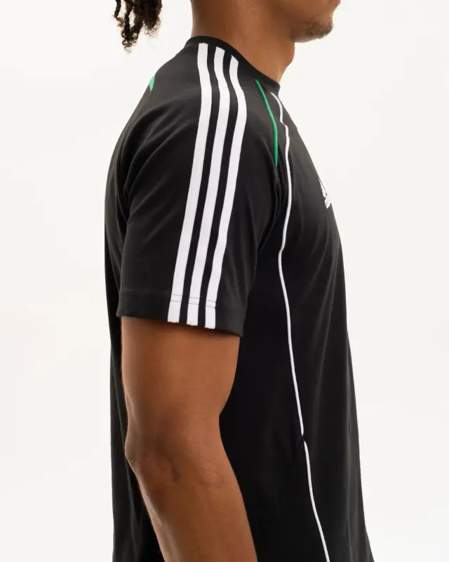 Channelling 2010 nostalgia, this black tee features as part of our 24/25 Urban Purist Range. Borrowing details from adidas’ football archive, this tee features contrasting green and white piping and a slim green back panel with magpie. This tracksuit inspired style is made from a soft, single-jersey fabric to keep you comfortable all day.