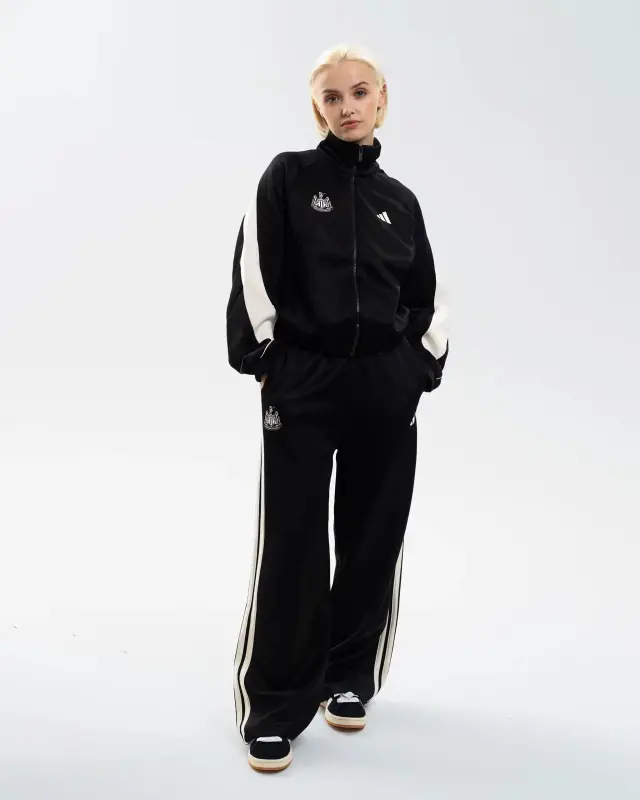 Make a statement in the Newcastle United adidas Women’s Black Bomber Jacket. This sleek zip-up features off-white panelling down the arms for a bold contrast, while the adidas logo and NUFC crest sit proudly across the chest. Perfect for layering on cooler days, it blends sporty edge with standout style – ideal for match day or everyday wear.
