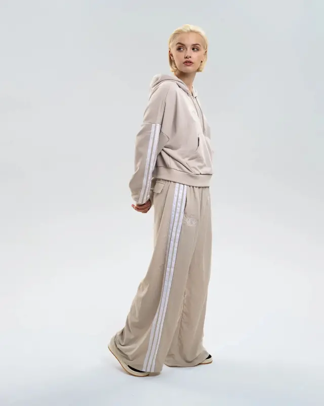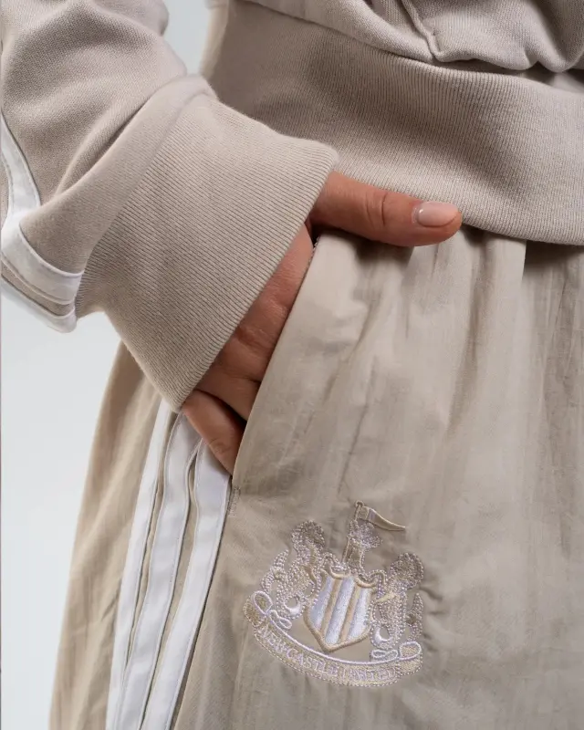 Elevate your casual look with the Newcastle United adidas Women’s Stone Woven Parachute Tracksuit Bottoms. Designed for comfort with a modern edge, these bottoms feature a flattering wide-leg silhouette, adidas’ signature 3-Stripes down the sides, and a soft stone colourway that pairs effortlessly with your wardrobe. Finished with the adidas logo and the iconic NUFC crest, they’re perfect for repping your team with laid-back style.