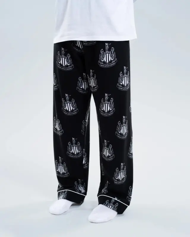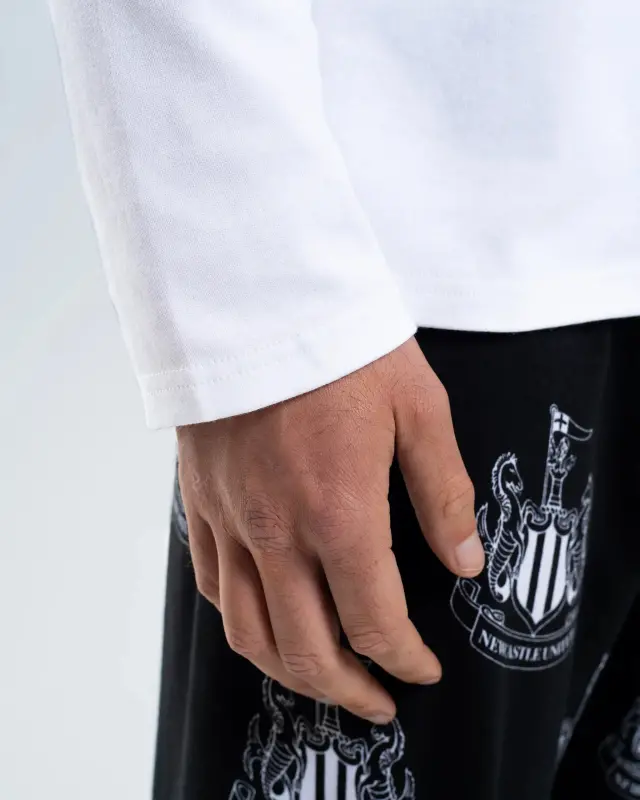 The Newcastle United Adults Black and White Crest Pyjama Set is made with 100% cotton, featuring long sleeves with the iconic NUFC crest front and centre, and NUFC crests scattered across the relaxed fit bottoms. This set is perfect for supporting the Magpies from the comfort of your own home.