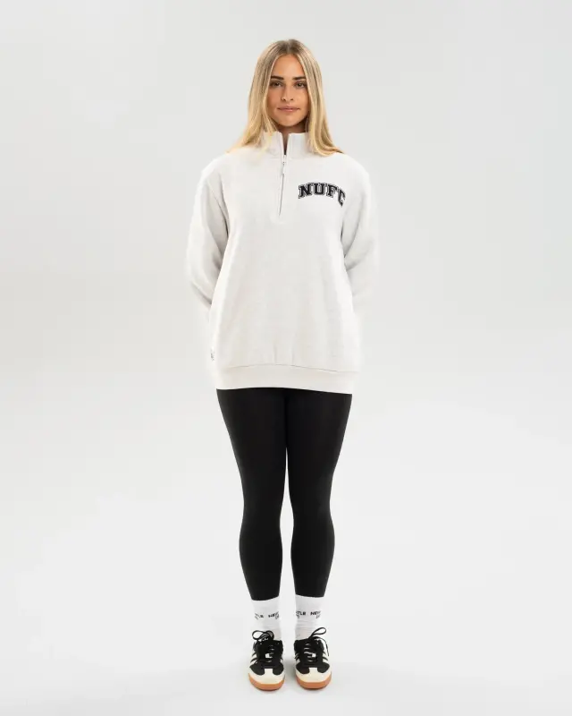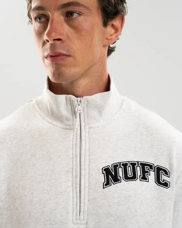 Stay warm and stylish with the NUFC Unisex Grey Half Zip Sweatshirt, a must-have everyday essential for all fans. Designed for versatility and comfort, this sweatshirt features a sleek quarter zip for easy layering as well as a bold “NUFC” embroidery across the chest proudly showcasing your team spirit.