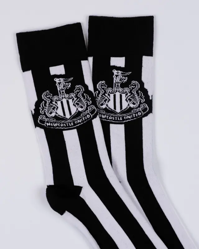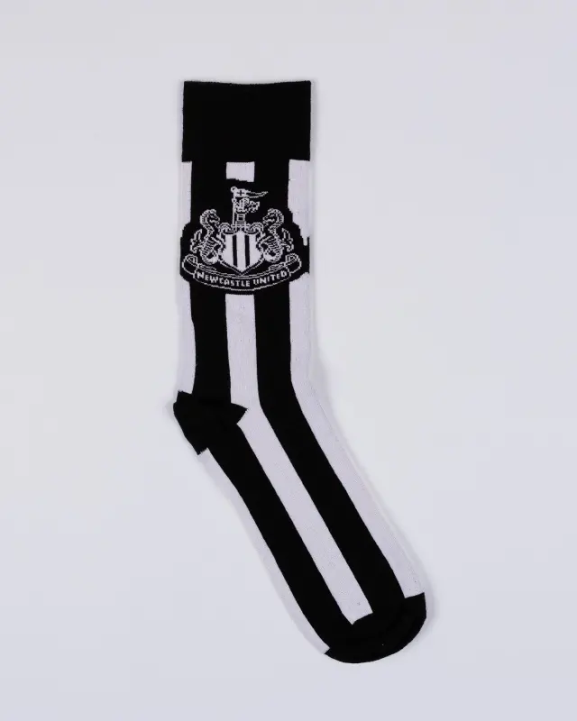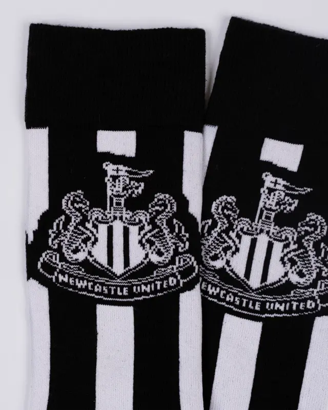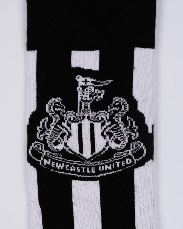 The Newcastle United Black and White Striped Socks are a true tribute to the kit, the club, and the city. Featuring bold black and white stripes and finished with the iconic NUFC crest, these socks are perfect for showing your colours from the ground up. A must-have for any Magpie, whether you’re in the stands or on the go.