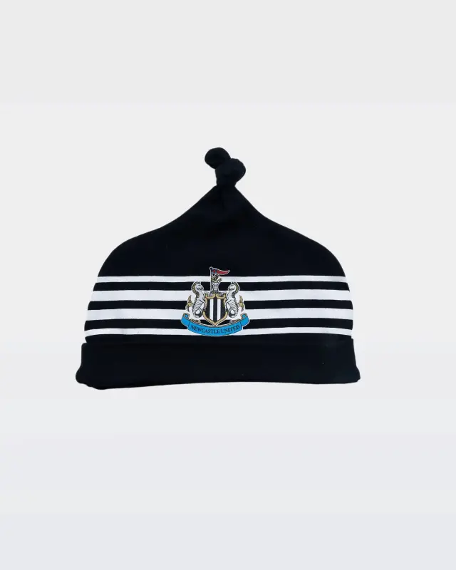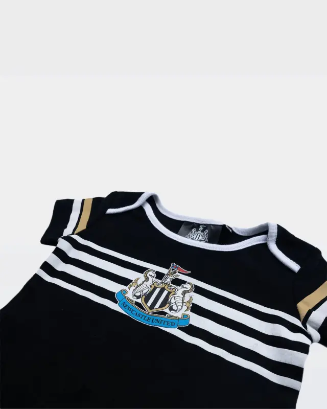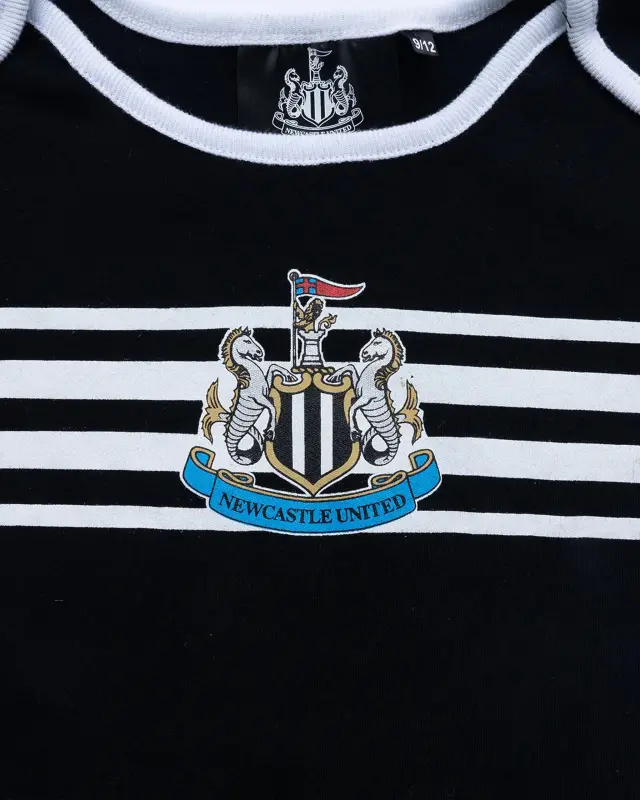 Set your little Magpie on the path to victory with the Newcastle United Bodysuit With Hat.Crafted from ultra-soft cotton, this black bodysuit and hat set features a white stripe with a centrally placed Newcastle United Club crest. Secure plastic snaps at the inner leg and an envelope neck closure allow for effortless changing, as well as a hat to keep your little one’s head cosy and warm.Product Details: