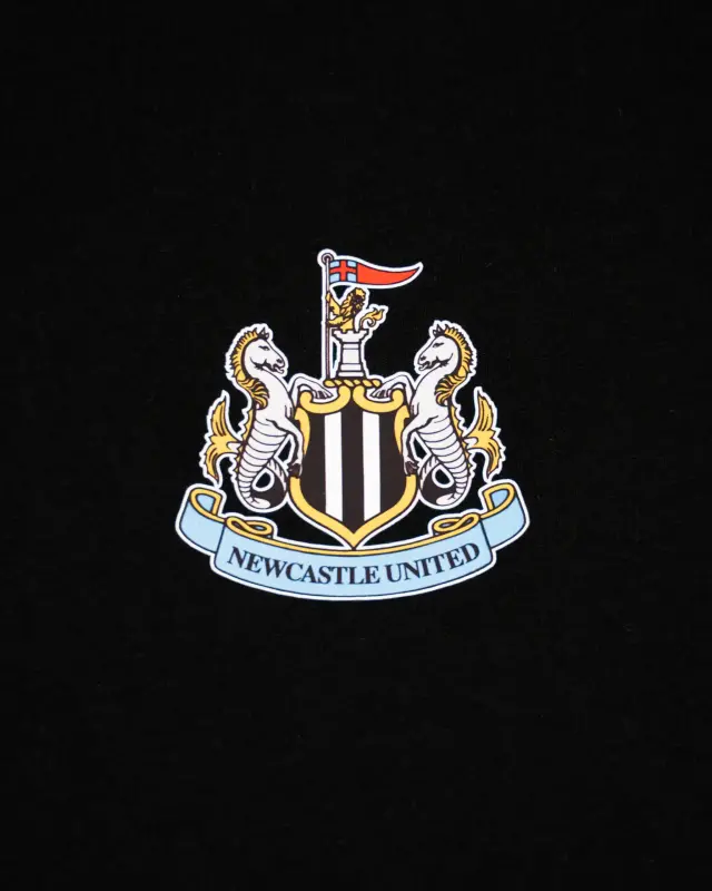 Wear the pride of Newcastle United’s return to the heart of European football with this black T-Shirt, featuring the NUFC crest and official Champions league logos across the chest. Made from soft, comfortable fabric, it’s designed for supporters who want to celebrate the 25.26 season in true European style. Perfect for match days and beyond.