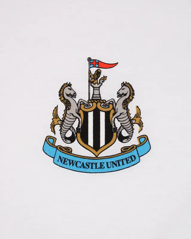 Celebrate Newcastle United’s proud return to the heart of European football with this white T-Shirt, featuring distinguished NUFC and Champions League logos across the chest. Crafted from soft, high-quality fabric, it offers a comfortable fit for supporters wishing to honour the 25/26 season in Geordie style – perfect for match days and beyond.