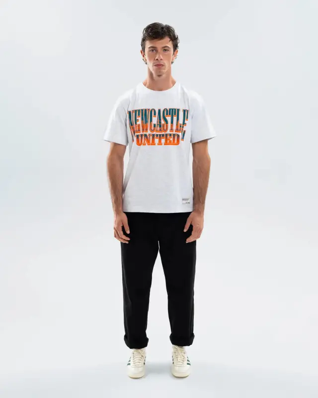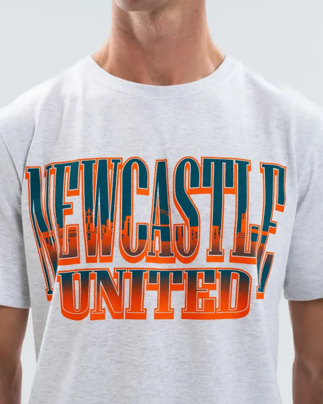 Celebrate your team in style with the Newcastle United Grey Graphic T-Shirt. Featuring a bold chest print in striking orange and green hues, this tee makes a statement wherever you go. The grey base provides a sleek contrast to the vibrant graphic, while a subtle branded tag at the hem adds a refined finishing touch.