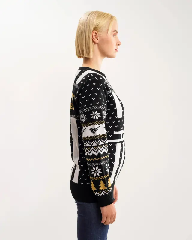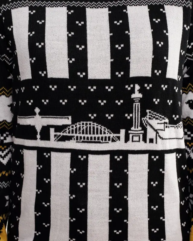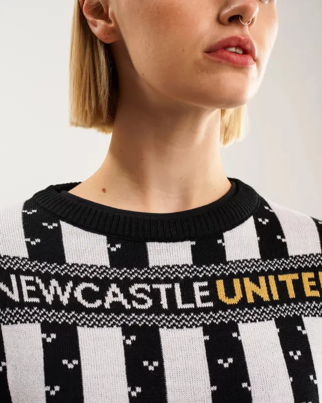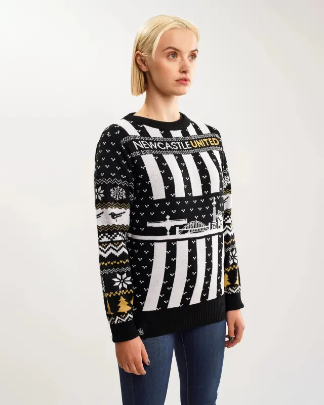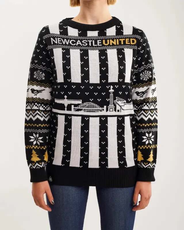 The Newcastle United Howay The Lasses Christmas Jumper is a festive take on our renowned black and white stripes. Featuring Newcastle’s iconic skyline, mini magpies and “Ho Ho Howay The Lasses” text on the back, this is a Christmas must-have for all the family.