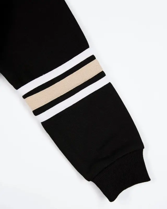 The Newcastle United Kids’ Black Collegiate Sweatshirt is a cosy addition to keep your little one warm while representing their favourite club. This all black jumper features “Newcastle United” written in a collegiate-style font and American influenced stripes around the elbow, cuffs and hem.