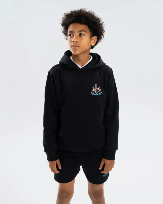 An everyday essential with a touch of club pride. This black hoodie from the Kids’ Essentials Range features a regular fit, a classic front pocket, and a soft hood for extra comfort on cooler days. Finished with the embroidered Newcastle United crest on the chest, it’s built for young fans who want to represent the club wherever they go.