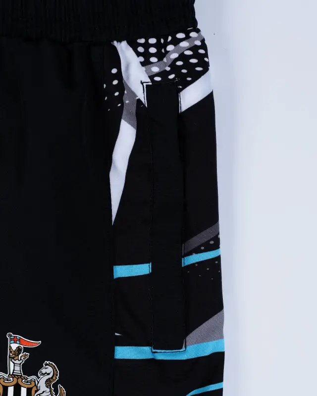 The Newcastle United Kids’ Patterned Shorts are a summer special designed to let your Magpies mad kid show-off their black-and-white spirit. These black shorts feature a light blue pattern on the sides and a full coloured Club crest.