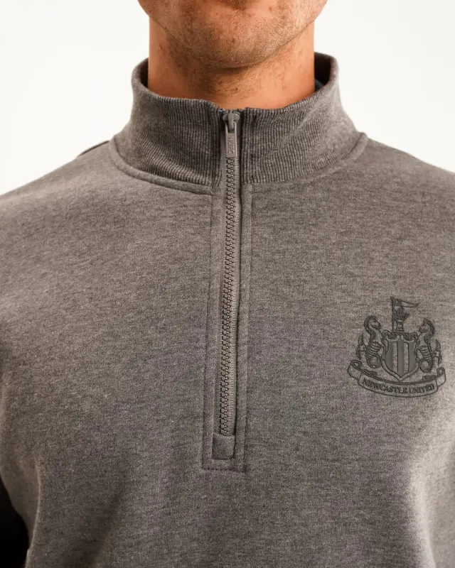 The Newcastle United Men’s Grey 1/4 Zip Sweatshirt has a premium look for those colder days. Made from a soft polyester and cotton mix, this sweater boasts a stand up collar, ribbed cuffs and hem and a discreet Newcastle United Club crest.