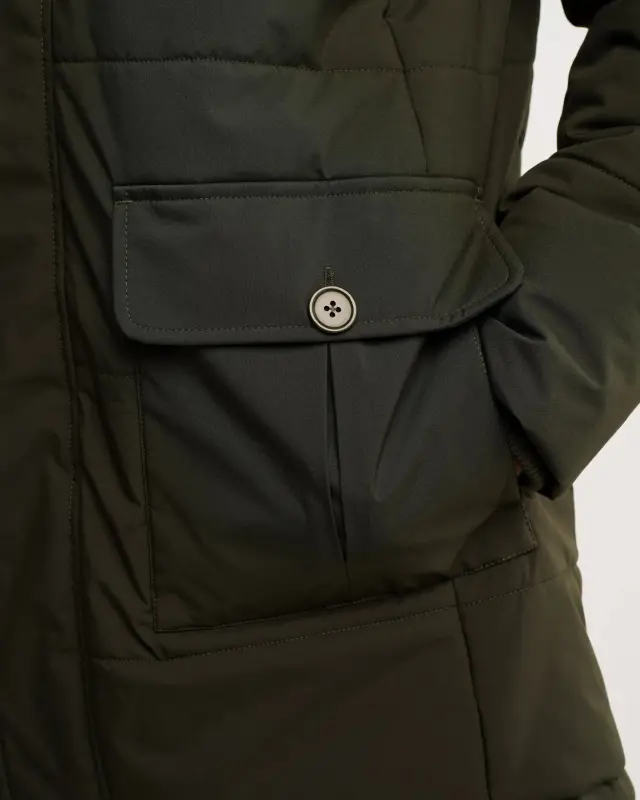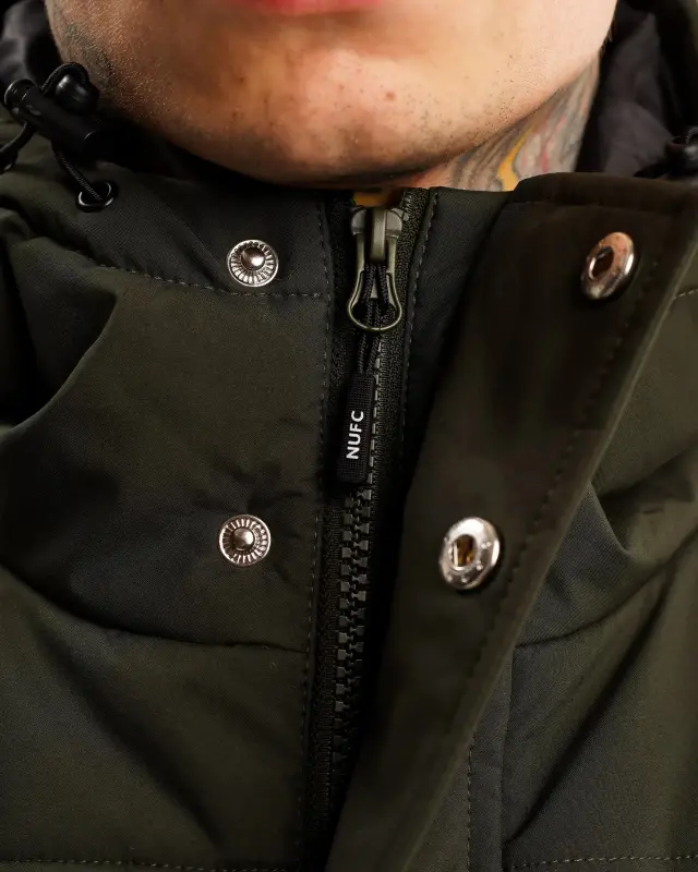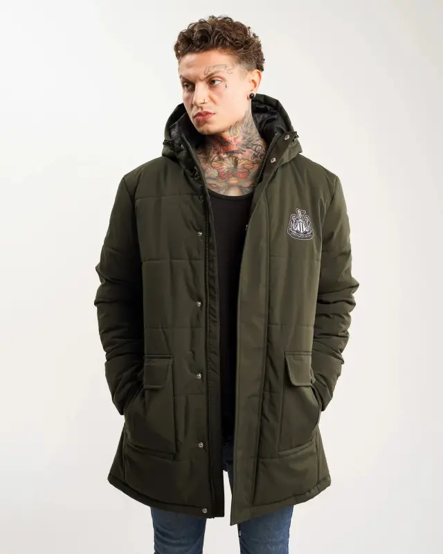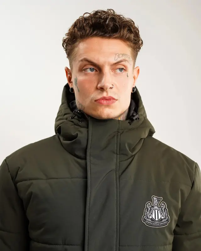 A long jacket for the coldest of days. The Newcastle United Men’s Khaki Long Padded Jacket offers a relaxed fitting overlayer to dress up any occasion. Designed with large front pockets and a roomy yet adjustable hood, be sure to stay toastie warm while showing off your love for Newcastle United while repping the monochrome crest.