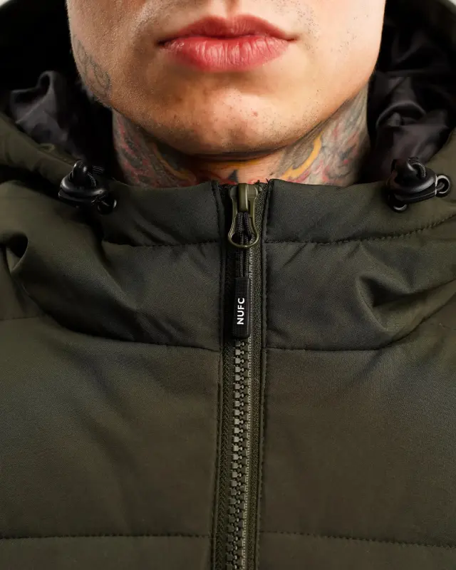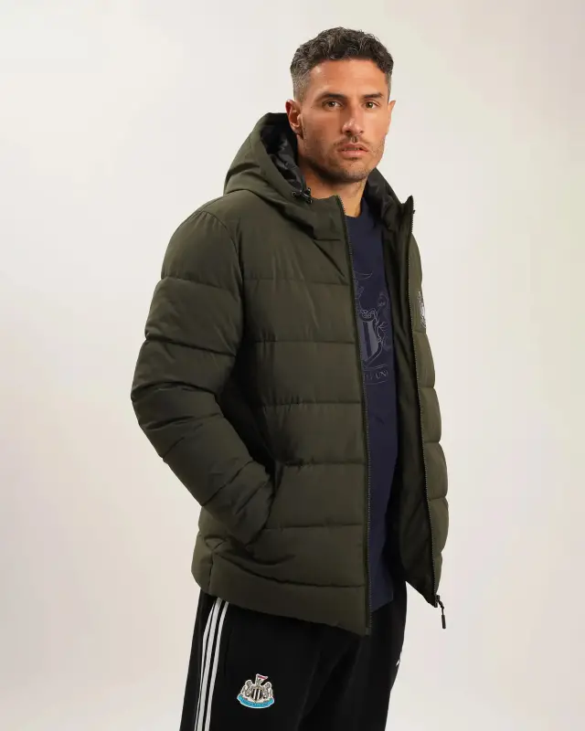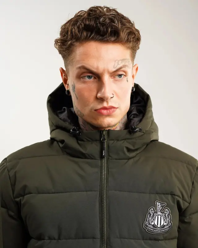 Update your winter wardrobe with the Newcastle United Men’s Khaki Short Puffer Jacket. Designed to protect against the elements this jacket offers the style and warmth needed to get you through the season while proudly representing the Toon Army!