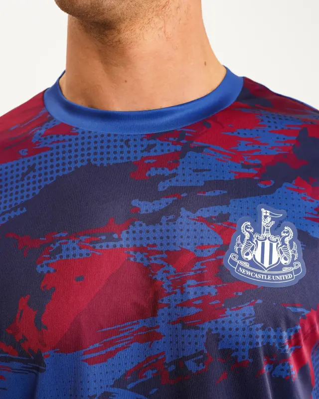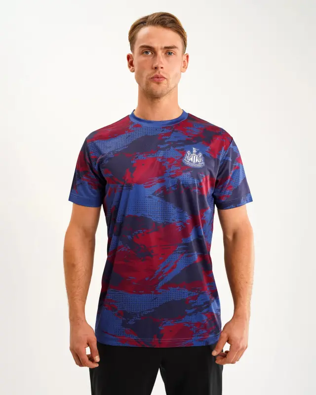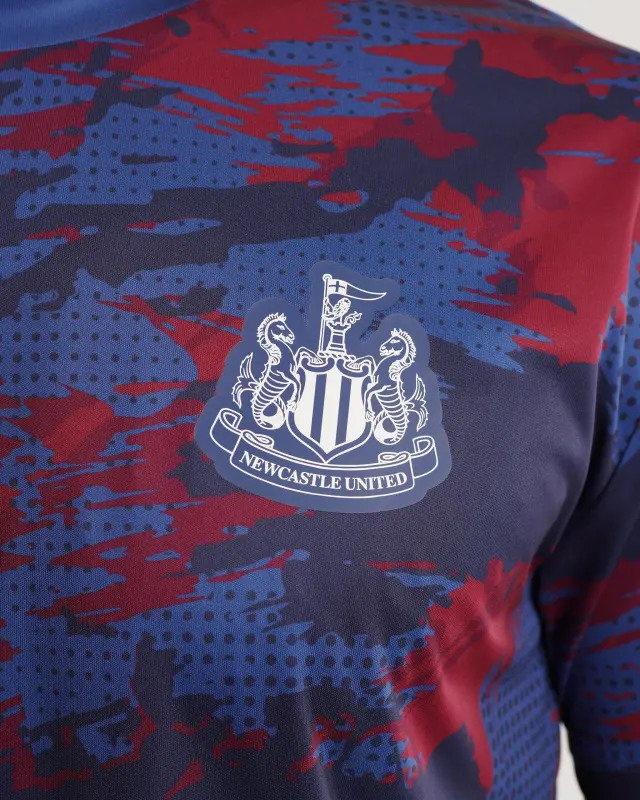 Designed for both style and performance, the Newcastle United Men’s Navy Camo Poly Tee offers a striking look. Featuring a ribbed crewneck and a rubber transfer printed Newcastle United Club crest, wear this tee with pride as you represent the Toon Army.
