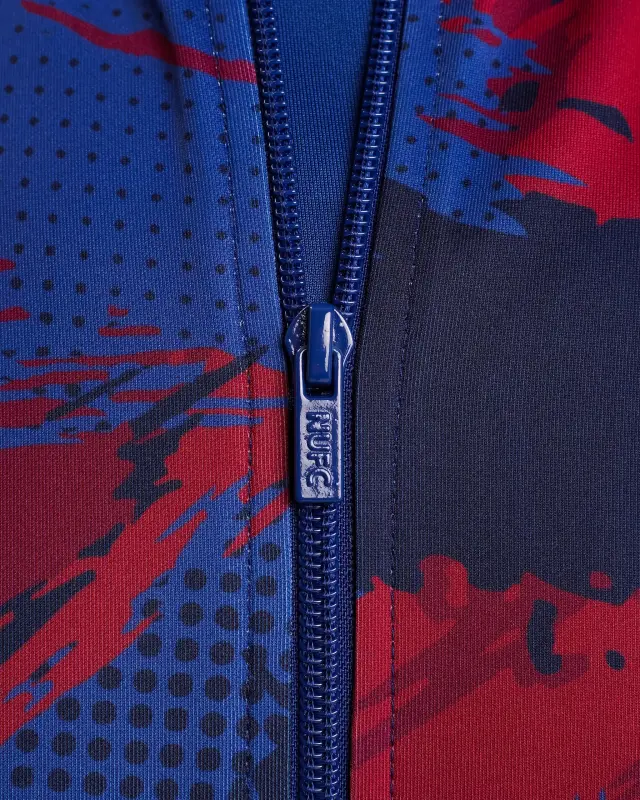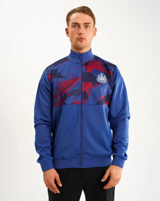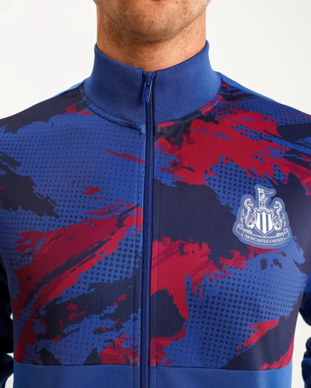 Enhance your sportswear with the Newcastle United Men’s Navy Camo Poly Track Top. With its navy and red camo design, this jacket is crafted to make you stand out while also keeping you comfortable. Featuring a rubber Newcastle United club crest on the chest, side pockets, and a full zip with a stand-up collar, it makes for the perfect outerlayer.
