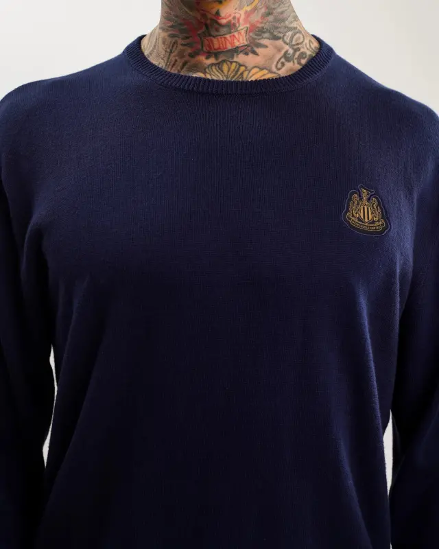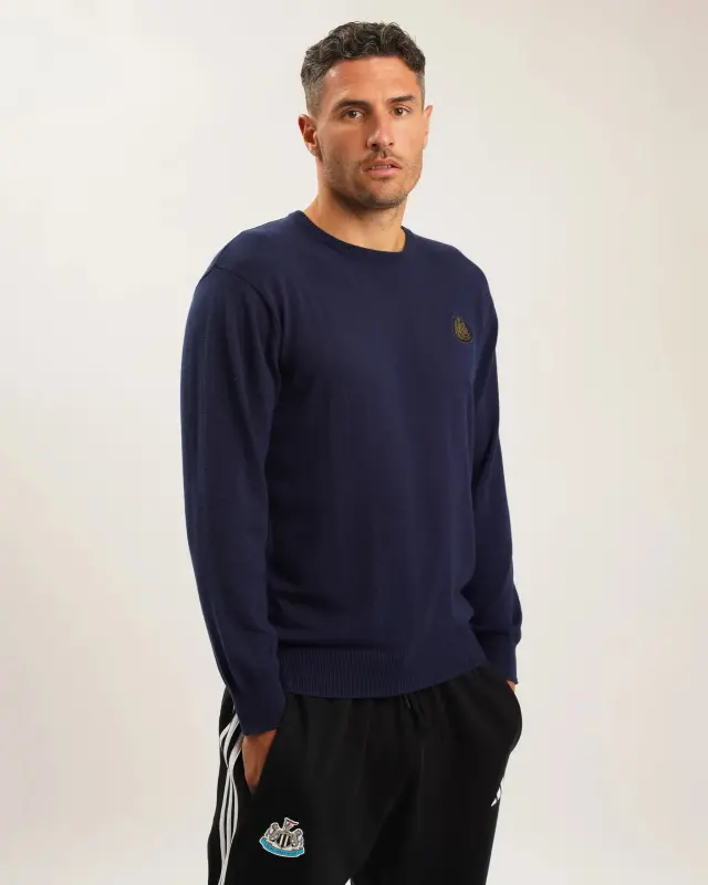 The Newcastle United Men’s Navy Crew Neck Knit Sweater is a fine knit piece that is an ideal choice for wearing on its own or using to layer up. Adorned with a Newcastle United Club crest, this fine knit sweater offers a smart yet casual option for whatever your day involves.