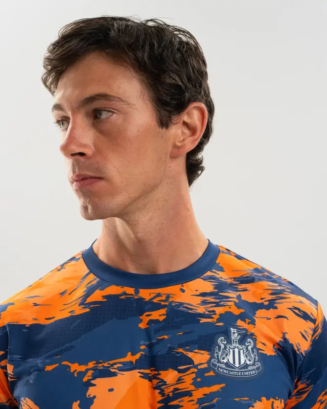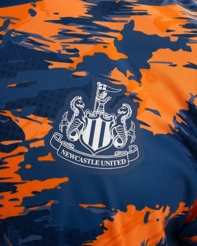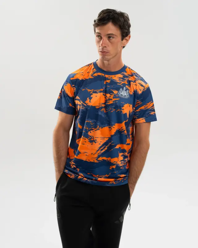Designed for both style and performance, the Newcastle United Men’s Navy Camo Poly Tee provides a striking 2025/26 Third Kit camo-inspired look. Featuring a ribbed crewneck and a rubber transfer printed Newcastle United Club crest, wear this tee with pride as you represent the Toon Army.