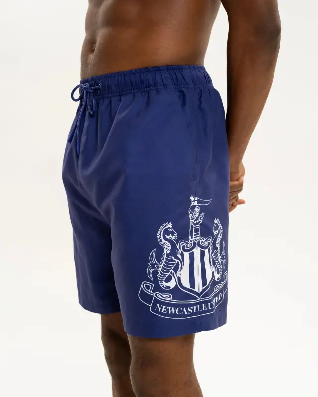 Get summer ready! The Newcastle United Men’s Navy Swimmers are a holiday essential. Boldly designed to feature a large monochromatic Newcastle United Club crest, these swimming trunks are perfect for if you’re heading to the beach, chilling by a pool or adventuring far and wide.