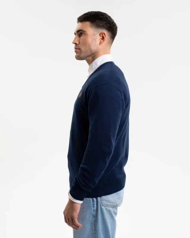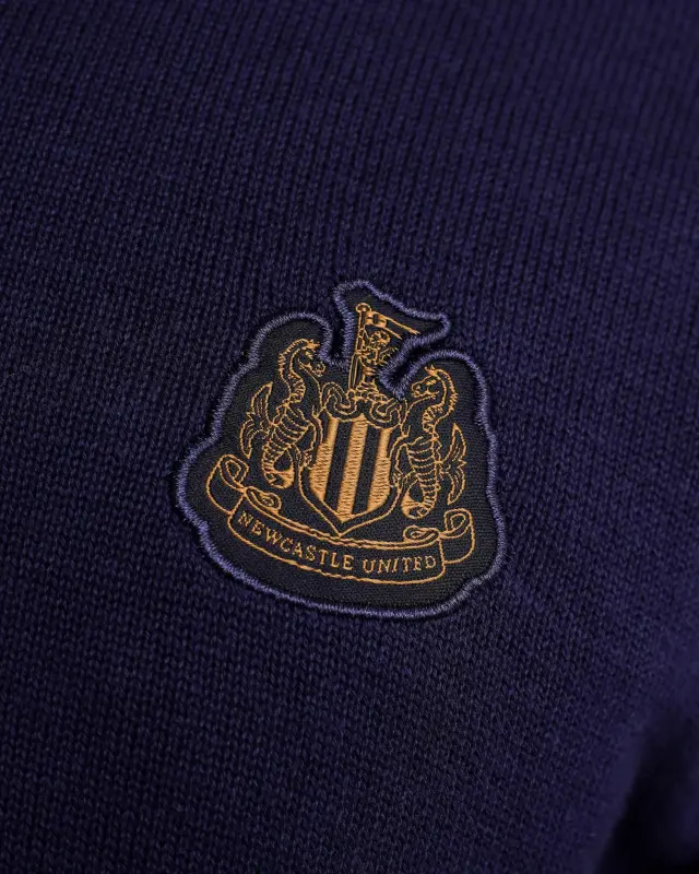 The Newcastle United Men’s Navy V Neck Knit Sweater offers easy style and comfort. Made from extra-soft cotton, its versatility enables you to wear it as you want, on its own or as an extra layer. Adorned with a gold Newcastle United Club crest, smartly represent the Toon at the match or while watching from home.