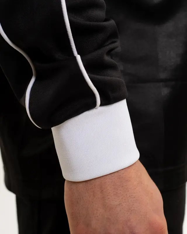 - Long sleeves with white ribbed cuffs