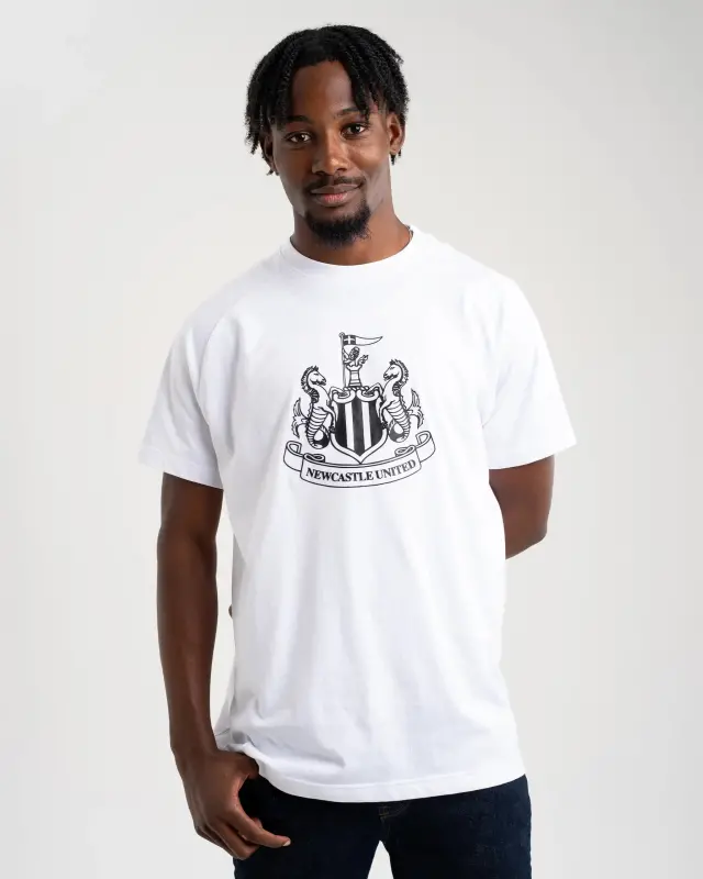 Wear the Newcastle United badge in style with the Newcastle United Men’s White Raglan Crest T-Shirt.