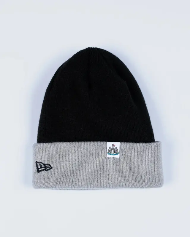 Howay The Lads! This kids Newcastle United New Era Beanie is a stylish look for a young fan. The black hat features a grey cuff and shows off “Howay The Lads” text with a magpie at the front.
