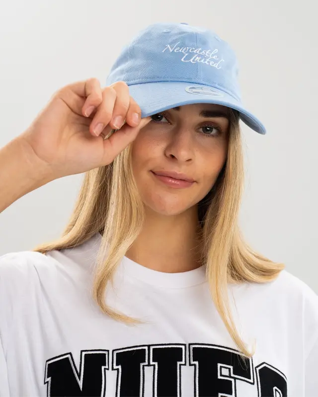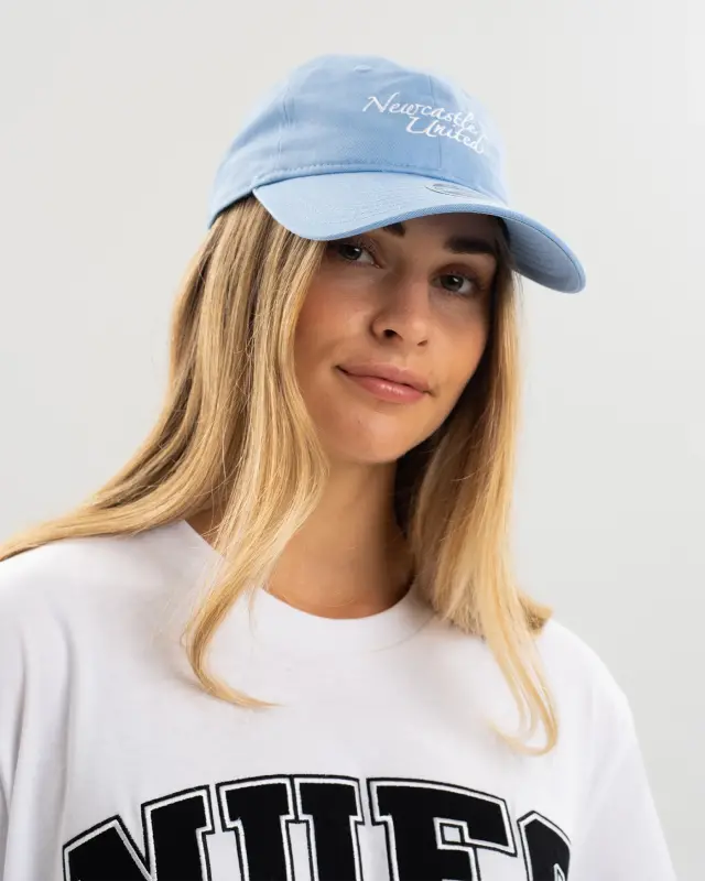 The Newcastle United Women’s Light Blue 9Twenty features cursive “Newcastle United” text on the front, an unstructured crown and a curved visor. With a New Era Flag on the left, and an adjustable back, this cap is perfect for summer walks when out and about.Product Details:
