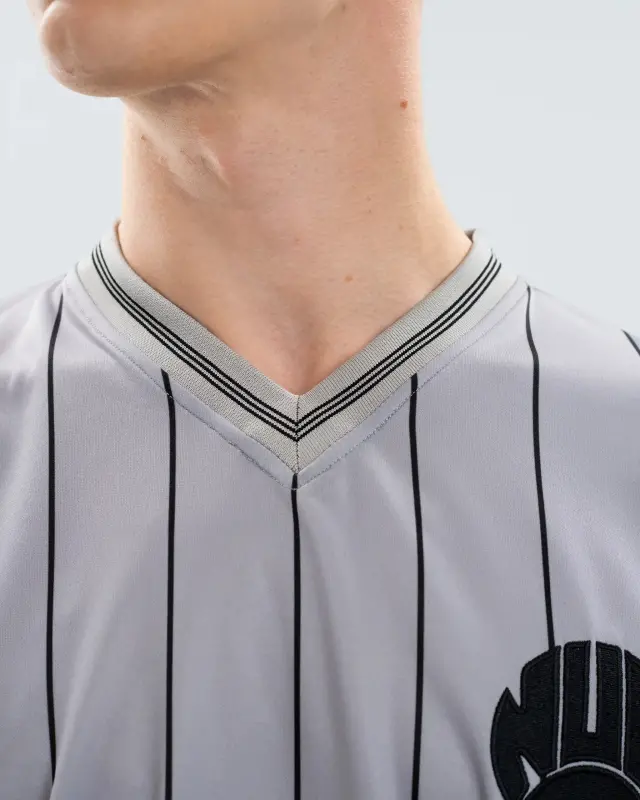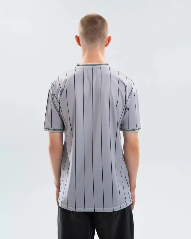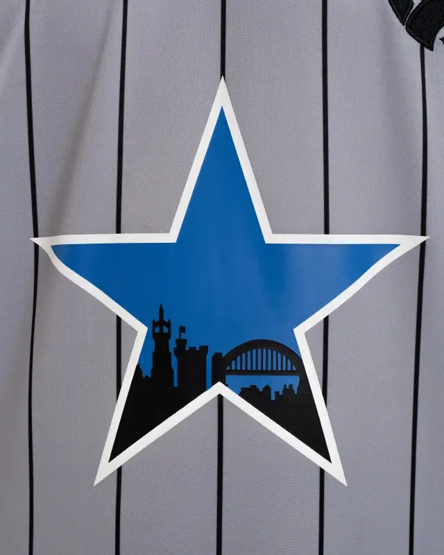 Pay tribute to a memorable era with the Newcastle United Retro 1984 Away Shirt. Featuring bold black stripes on a grey base, this shirt captures the distinctive style of the mid-80s, a period of resilience and passion for the Toon Army. The striking blue star at the centre showcases the Newcastle cityscape, symbolising the club’s strong local roots, while the retro NUFC crest adds authentic vintage flair. Finished with a sharp V-neck collar, this shirt honours the spirit of the fans and the club during a challenging but defining chapter in Newcastle’s history.
