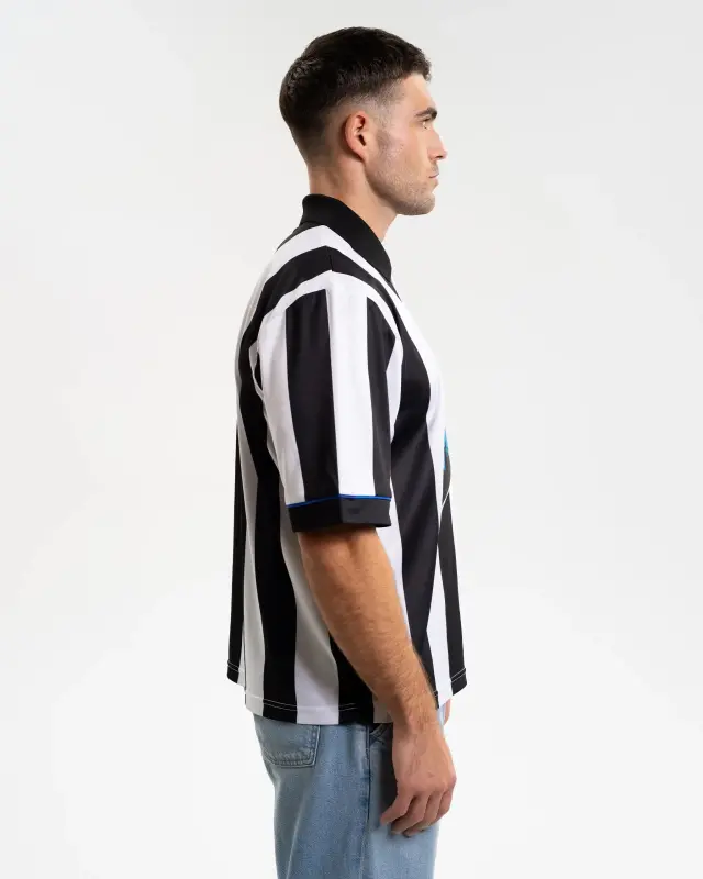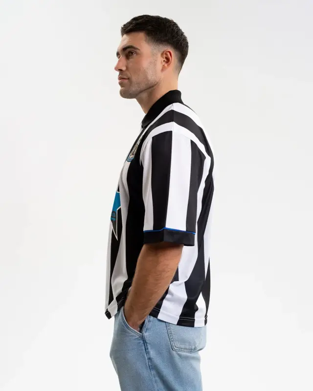 The Newcastle United Retro 1993/95 Home Shirt is a fan favourite. Significant in its association with a 3rd place Premier League finish, it is most recognisable from the Newcastle Blue Star that features on the front of the shirt. Worn by the likes of Cole, Beresford, Lee, Fox, Peacock, & Clarke, this shirt marks the start of Kevin Keegan’s tenure in black and white stripes.