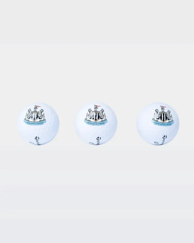 Show your team spirit with the Newcastle United TaylorMade Golf Balls, a set of three premium white golf balls featuring the iconic club crest. Crafted by TaylorMade and part of the Distance+ range, these balls are designed for speed. The REACT Speed Core and high-speed, low drag aerodynamics provide an enhanced performance that withstands regular play. The crisp white colour provides high visibility, making it easy to track your shots.
