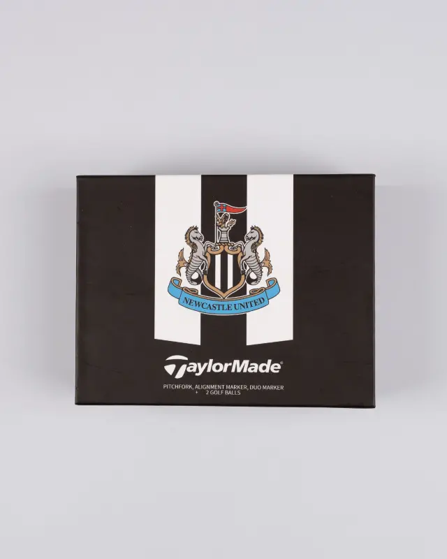 Elevate your golf game with the Newcastle United TaylorMade IBOX Plus Set. Encased in a hand-crafted Newcastle United branded gift box with a deluxe magnetic closure you will find two high-quality TaylorMade golf balls, a mission alignment tool for precise shots, a mission coin marker, and a mission ball marker.