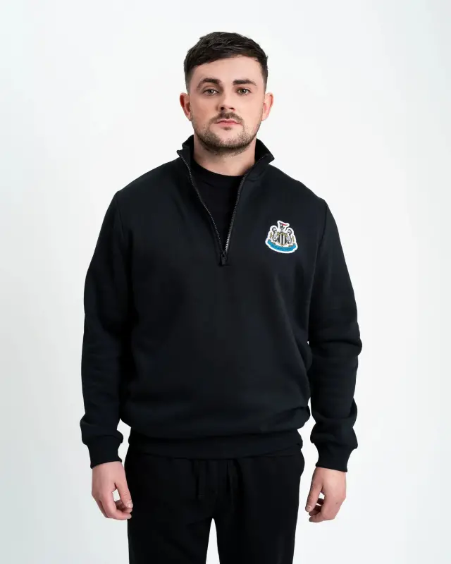 Enhance your style with the Newcastle United Terrace 1/4 Zip Sweatshirt.Made from smooth, lightweight polyester, this sweatshirt showcases a printed Newcastle United crest at chest and an embossed ‘NUFC’ branded zip puller. With a quarter zip and stand-up collar for added warmth and coverage, it ensures comfort and pride throughout the season.Product Details: