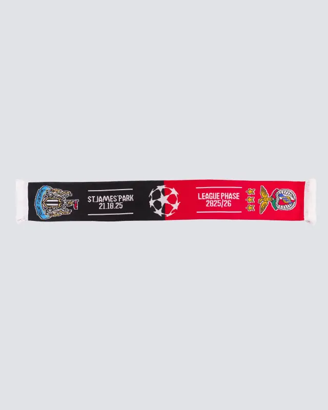 Designed for the Champions League clash, this limited-edition scarf features both club crests and colours, capturing the spirit of the occasion. Whether you’re backing the Magpies at the match or adding to your collection, it’s the perfect way to mark a special night on the European stage.