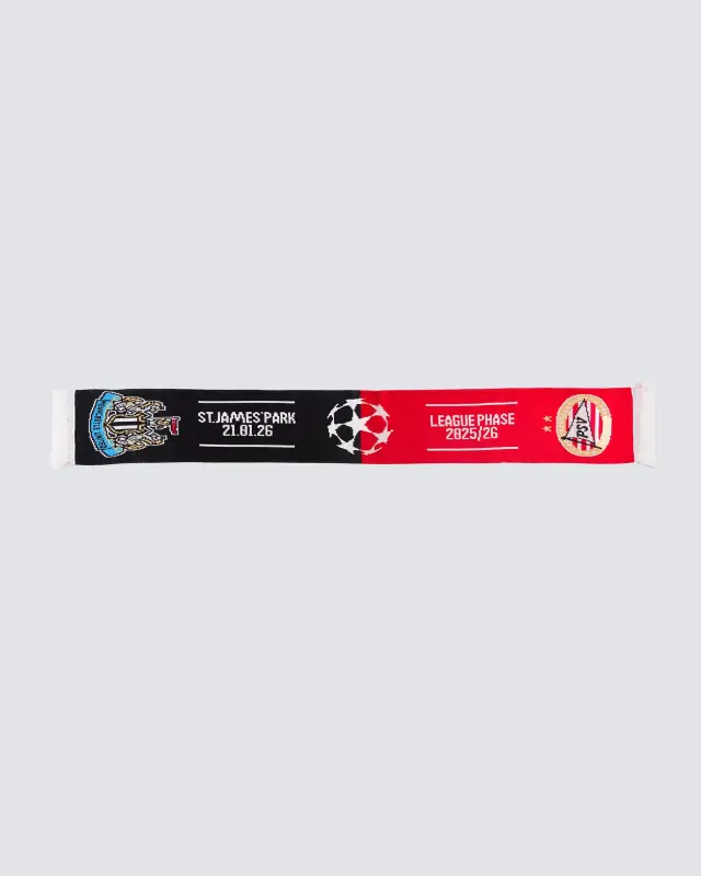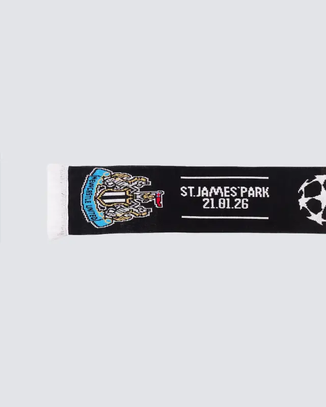 Designed for this high-stakes European clash, the scarf features the colours and crests of both clubs, capturing the excitement of the occasion. Whether you’re in the stands or adding to your collection, it’s the perfect keepsake from the Magpies’ Champions League campaign.