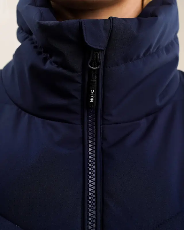 As the temperatures begin to drop, the Newcastle United Women’s Navy Lightweight Jacket is there to get you through your day. Designed with an adjustable waist, elasticated cuffs and a stand up padded collar, this jacket is made to lock in warmth and keep you feeling cosy. With a monochrome Newcastle United Club crest on the chest, and subtle NUFC branded zip toggles, your proud allegiance to the club is on display.