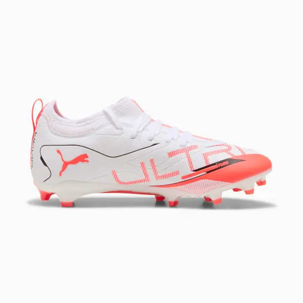 How fast is the ULTRA 5 MATCH? Fasten your seatbelt and unleash your speed on firm or artificial soccer grounds with PUMA’s latest innovation. Featuring SPEEDSYSTEM for rapid acceleration, GripControl skin for ball command, and a lightweight mesh upper, these cleats are designed for game-changing performance and ultimate traction.